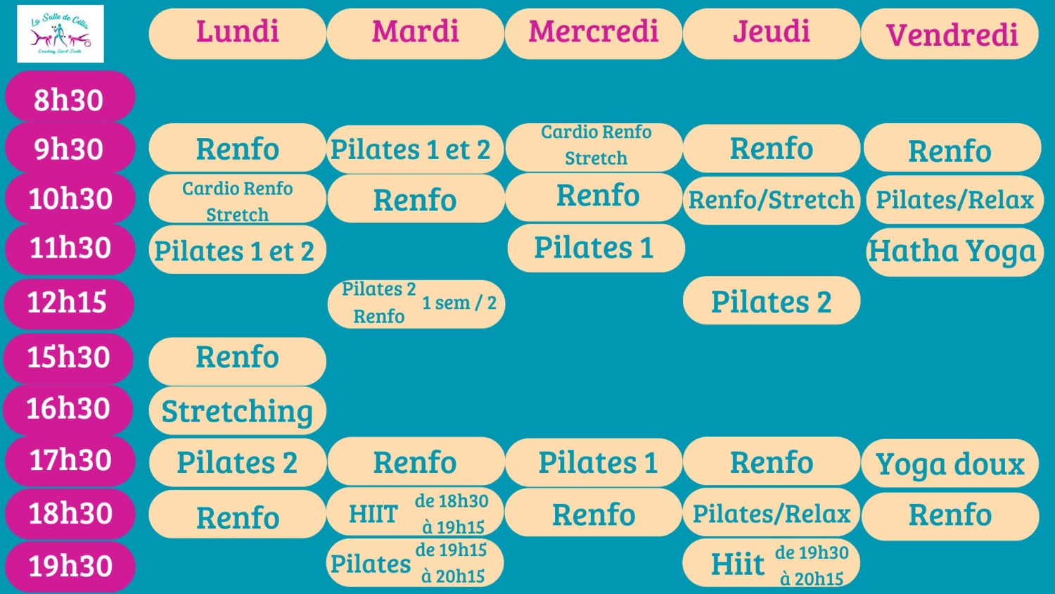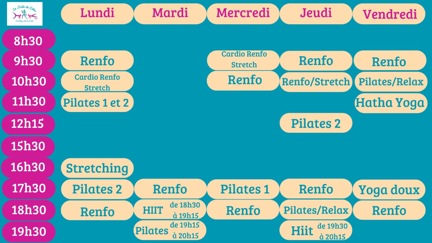 Pour les personnes déjà inscrites à la salle, vous avez accés à ce planning sur le logiciel de réservation en ligne.